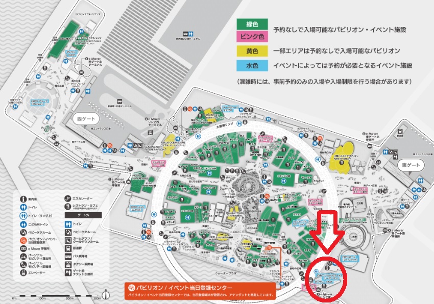 大屋根リングの横になりますので、東ゲートを入られたら、大屋根リングに沿って歩いていただくと分かりやすいと思います。